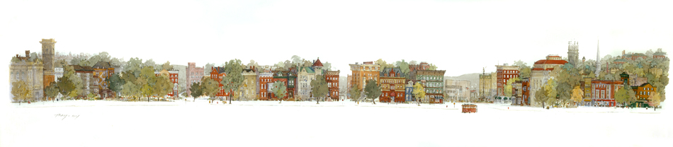 Surely Troy’s wonderful architecture adds a critical dimension that would be sorely missed if it had disappeared or never existed. That’s the critical dimension I have tried to capture in my townscape of Troy.